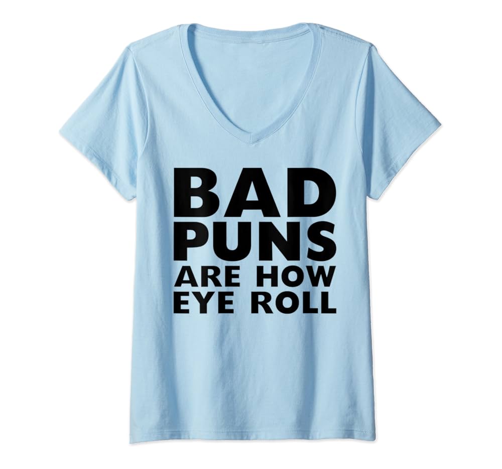 Amazon Com Womens Bad Puns Are How Eye Roll Funny Joke Humor Saying Pun Quotes V Neck T Shirt Clothing Shoes Jewelry